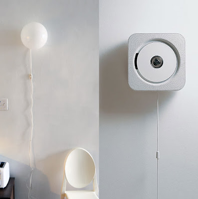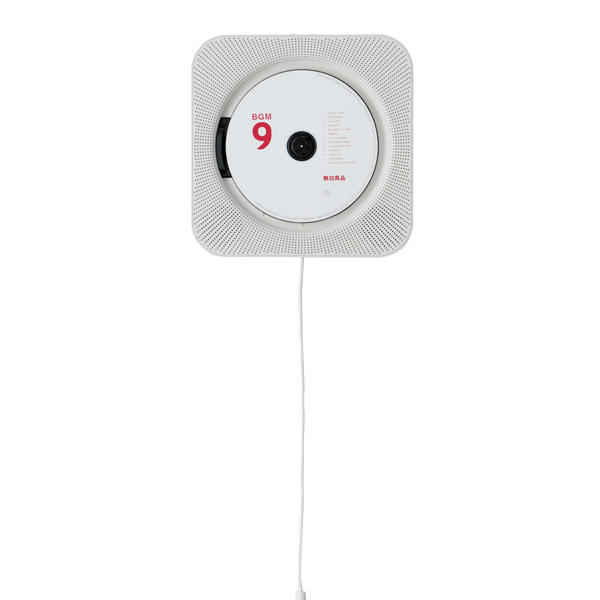 El emblemático Reproductor de CD de pared de Muji ha sido rediseñado para incluir radio FM, control remoto y pantalla LCD retroiluminada. Los altavoces están incorporados en el cuerpo del reproductor de CD y para encenderlo simplemente se tiene que tirar suavemente del cable.